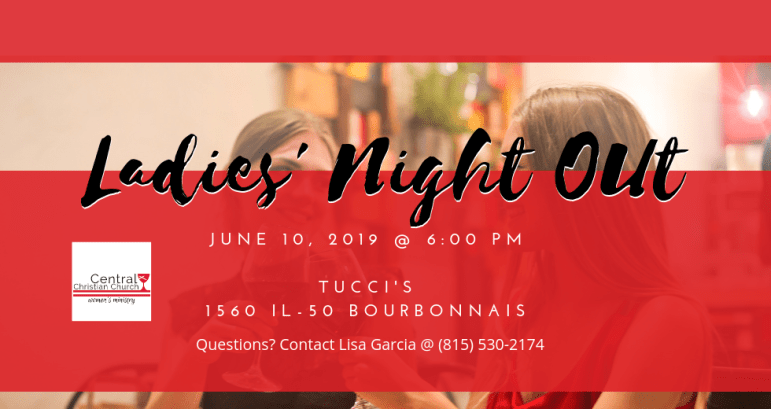 Our annual Ladies’ Night Out will be on Monday June 10, 2019 at 6:00 pm at Tucci’s, located at 1560 IL-50, Bourbonnais, IL 60914. Sign up at church if you can, but don’t let that stop you from coming and bringing a friend. You can also just let Lisa Garcia know by texting or calling (815) 530-2174.