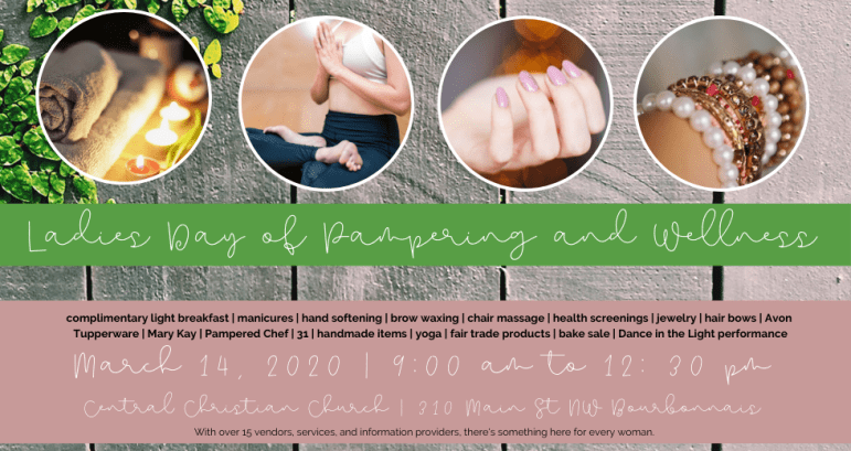 complimentary light breakfast | manicures | hand softening | brow waxing | chair massage | health screenings | jewelry | hair bows | Avon | Tupperware | Mary Kay | Pampered Chef | 31 | handmade items | yoga | fair trade products | bake sale | Dance in the Light performance